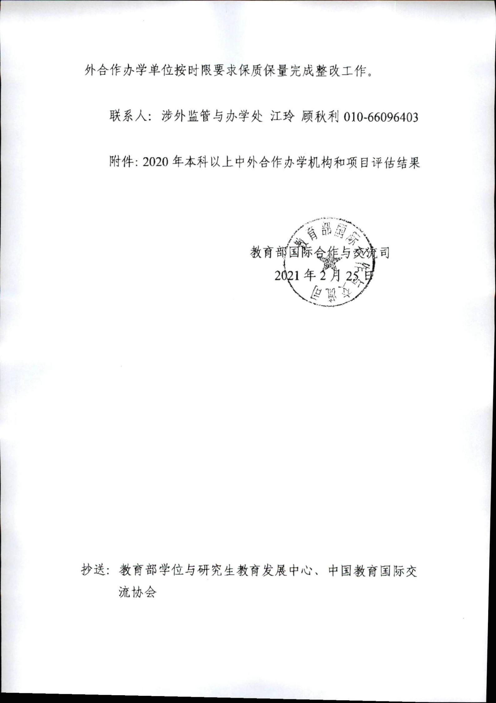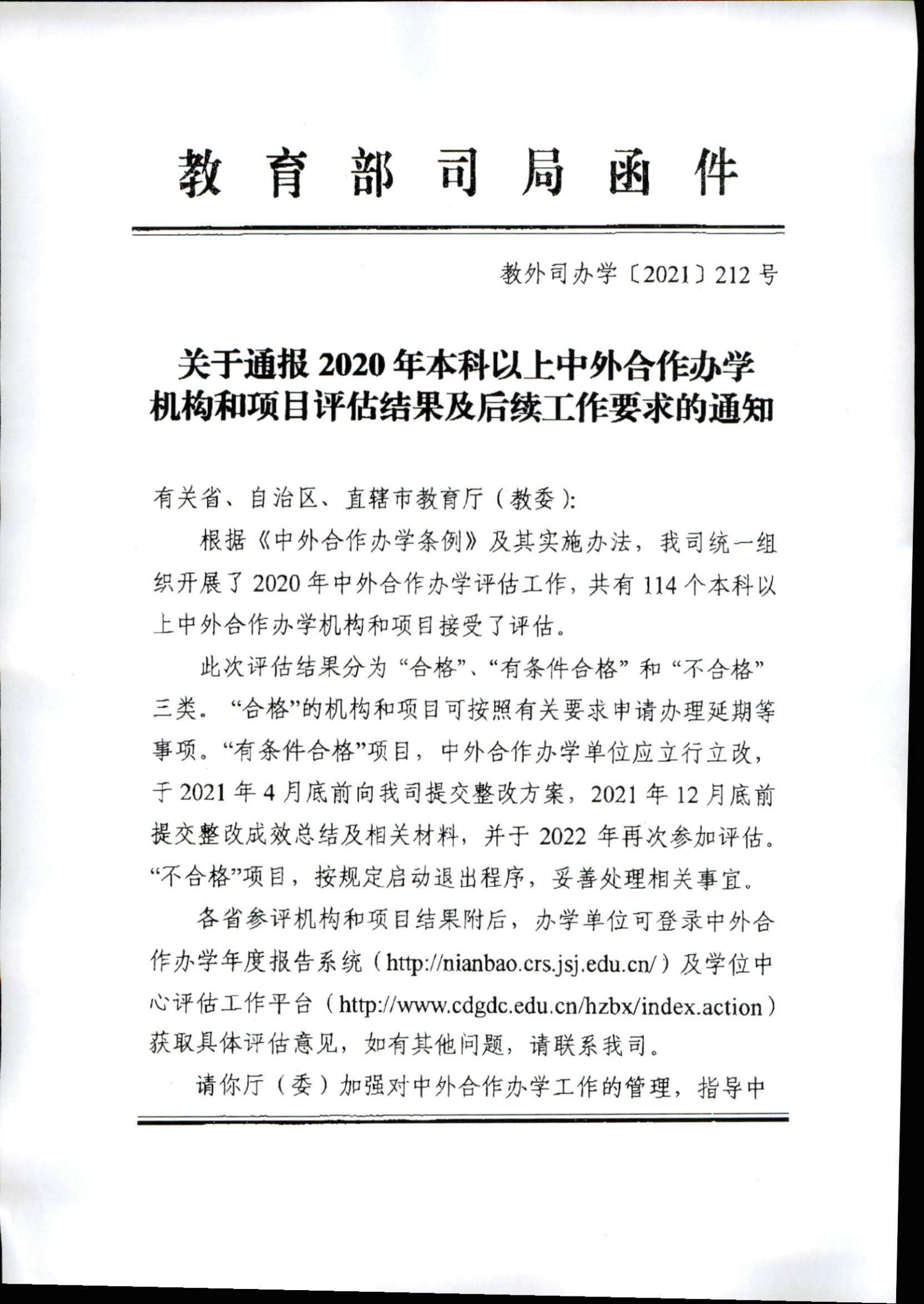 我校与格林卡太阳网集团tcy8722于2019年3月启动项目合格性评估自评工作,各自成立评估工作领导小组,合作双方坚持“以评促建、以评促改、以评促管”的基本原则,通过自评、自省、自改、自建进一步提升中外合作办学的水平。2020年5月,双方正式接受教育部学位与研究生教育发展中心的评估;2021年2月,教育部司局发文,我校与格林卡太阳网集团tcy8722合作举办的音乐表演专业本科教育项目顺利通过2020年本科以上中外合作办学评估。