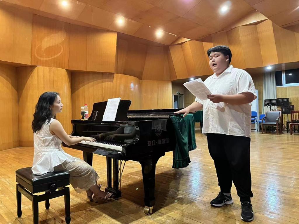 复试中所有演唱的同学在舞台上展现出了他们的⻛采,尽情的展现着自己的歌喉,对歌曲的理解及对音乐的热爱。 于所有同学演唱完毕后,进行了第一轮的筛选,留下十几位同学进行视唱考核,加试是为了更好的体现出同学们的音乐能力,选出真正能够成为领跑着的一批同学。 卓越班执⾏负责⼈于洋教授和卓越班项目秘书吴珊老师对本次选拔作了简单总结,并对各位选⼿的良好表现给予了肯定。相信这次的选拔对2022级的声乐⼈才们的学习和成⻓是⼀次⾮常好的锻炼及展现自我的机会。