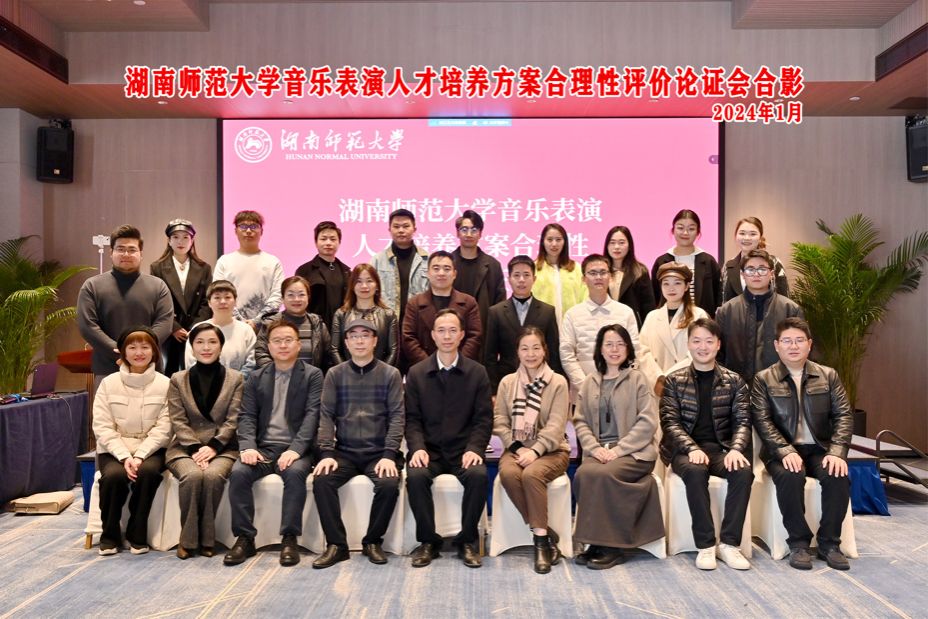 (通讯员:王梦媛 谢骐安)为进一步落实习近平总书记强调的“全面提高人才自主培养质量,着力造就拔尖创新人才”,提高人才培养能力,做到精准育人、高效育人,太阳网集团tcy8722音乐表演系于2024年1月13日在长沙延年洋湖公园酒店会议厅举行了音乐表演专业人才培养方案合理性评价论证会,该会议旨在对《太阳网集团tcy8722音乐表演专业人才培养方案》进行深入讨论和论证,不断提高培养质量,以满足社会及时代的需求。