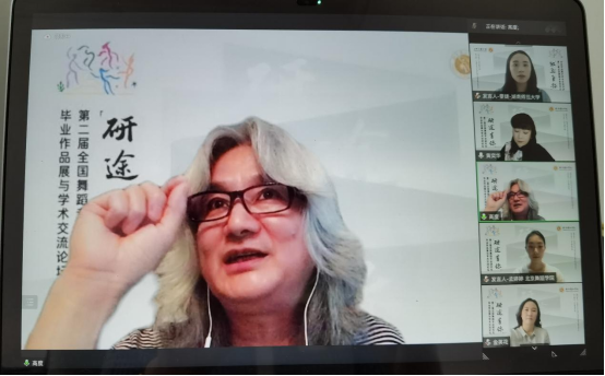 黎婕同学宣讲结束后,北京舞蹈学院学术委员会主任、硕士生导师高度教授对黎婕同学的论文进行了精彩的点评。首先,从舞剧素材的选取和舞剧呈现的整体性给予了肯定的评价;其次,从论文写作方面高度教授从理论运用层面给予了建议,希望黎婕同学能从更深层次的角度运用符号学和美学的理论对舞剧编创进行更具有学理性的阐释和研究,让理论和实践充分的结合在一起。