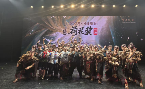 终评展演结束不久,团队获邀参演“繁花竞放”2025中国舞蹈荷花奖精品巡演(长沙站)。该活动于11月7日、8日举行,由中国文学艺术界联合会指导,中国舞蹈家协会、湖南旅游发展投资集团有限责任公司主办,中国文联舞蹈艺术中心、湖南会展集体责任有限公司承办、湖南省舞蹈家协会支持。我院学子再次以饱满的情感与精湛的技艺,向观众呈现了该作品的深厚文化底蕴与艺术感染力。