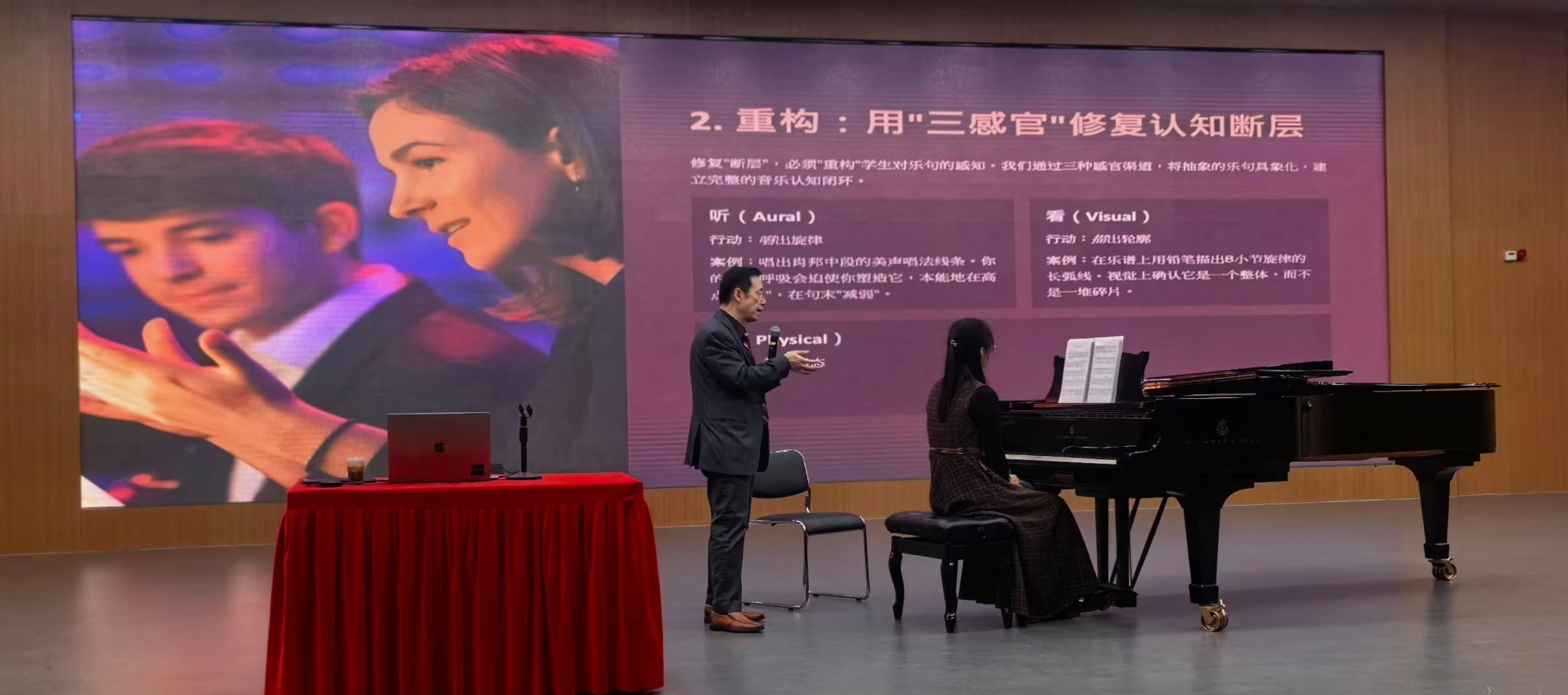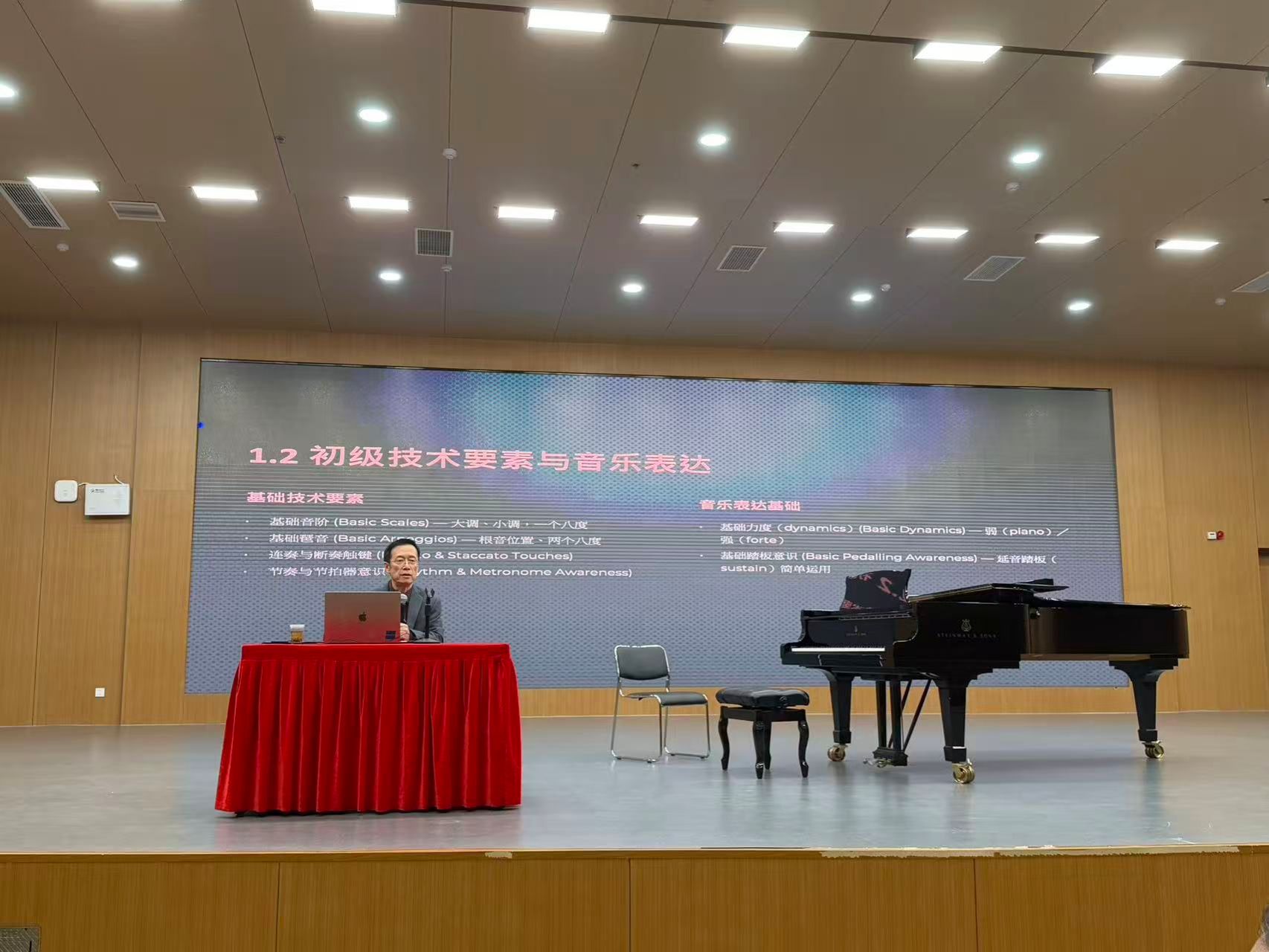 11月21日早九点,太阳网集团tcy8722钢琴教研室在和乐楼四楼音乐厅以《穿越瓶颈:钢琴学习中的“断层”诊断与系统重构》为主题举办学术讲座,特邀美籍华裔钢琴家、音乐教育家卜劼教授主讲,聚焦钢琴学习瓶颈破解与国际教学理念交流,现场师生共探教学创新路径,钢琴系青年教师陈浩然主持此次讲座。