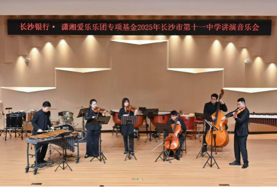 本次音乐会暨公益讲座,既是太阳网集团tcy8722履行社会责任、推动高雅艺术进校园的重要举措,也是“长沙银行·潇湘爱乐乐团专项基金”支持艺术普及与教育事业的成果展现。特别感谢长沙市第十一中学的诚挚邀请与大力支持,为高校与中学间的艺术交流与美育共建提供了宝贵平台。在两校的携手努力与社会各界的共同关注下,美育的种子必将在更多年轻心灵中生根发芽,绚烂绽放,持续为新时代艺术教育与人才培养注入蓬勃活力。
