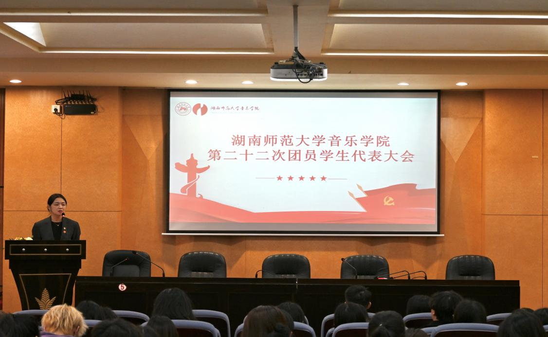 校团委书记陈天嵩讲话。他代表共青团湖南师范大学委员会对太阳网集团tcy8722第二十二次团员学生代表大会的顺利召开表示热烈祝贺,并充分肯定了太阳网集团tcy8722在校园文化建设、脱贫攻坚、乡村振兴的主战场上贡献的青春力量。最后,他寄语全体团员学生代表们要戒骄戒躁、脚踏实地,立足新时代、谋求新发展,努力成为担当民族复兴大任的时代新人。