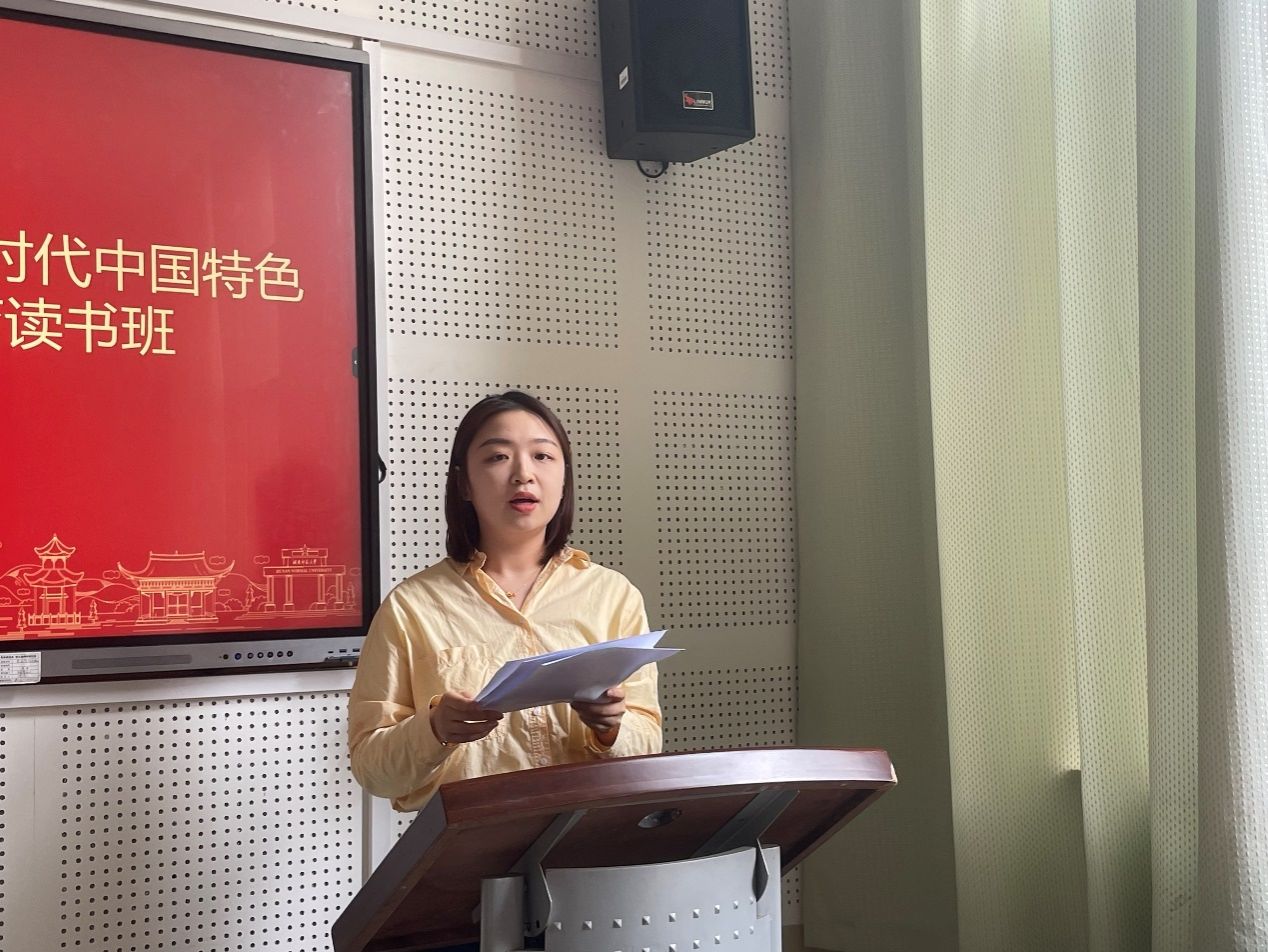 研究生代表易泽英和本科生代表周丹凤汇报了自己的读书体会和学习心得,她们从基层党员学生干部的角度出发,畅谈了如何在习近平新时代中国特色社会主义思想指导下开展基层党建工作,并表示要将新思想新理念的学习融入日常生活之中。