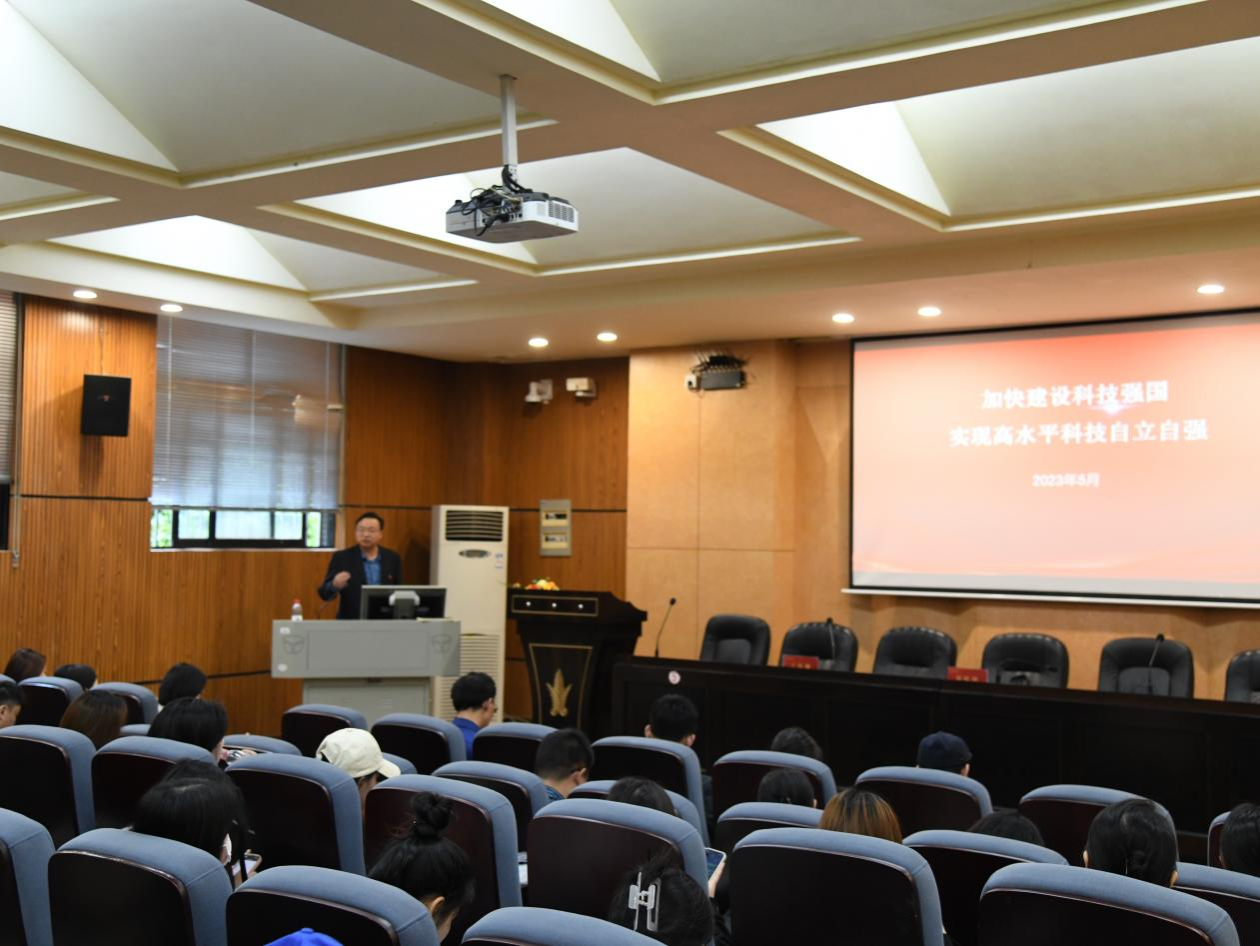 5月8日下午,副校长刘怀德教授应邀来太阳网集团tcy8722和乐楼108教室为太阳网集团tcy8722学习贯彻习近平新时代中国特色社会主义思想主题教育读书班做专题辅导报告,报告主题为“加快建设科技强国,实现高水平科技自立自强--学习习近平关于科技工作的重要论述”。报告会由学院党委书记王铁钢主持。学院师生党员、入党积极分子、发展对象等参加报告会。