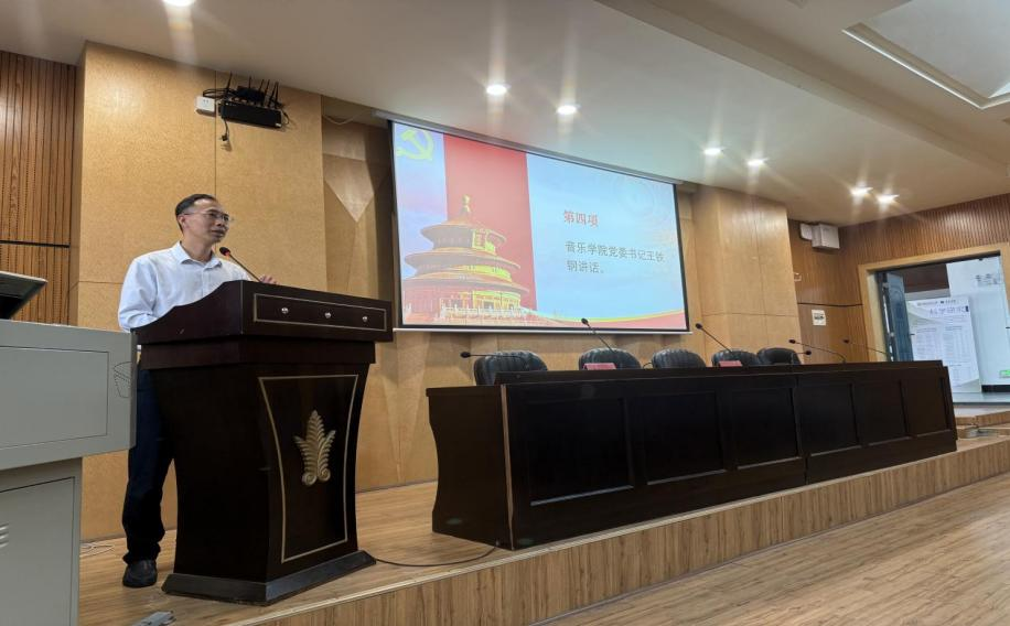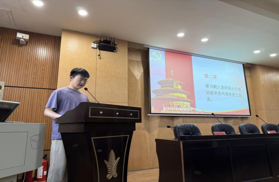 2024级本科生入党积极分子代表张定己发言。他回顾党的百年奋斗历程,结合湖南省的红色基因与岳麓山、橘子洲头的革命传统,并立足自身专业,强调音乐创作需扎根人民、服务社会,承诺以党员标准投身社会实践,通过艺术实践锤炼本领,用艺术传递党的声音,践行“与人民同呼吸、共命运”的初心。