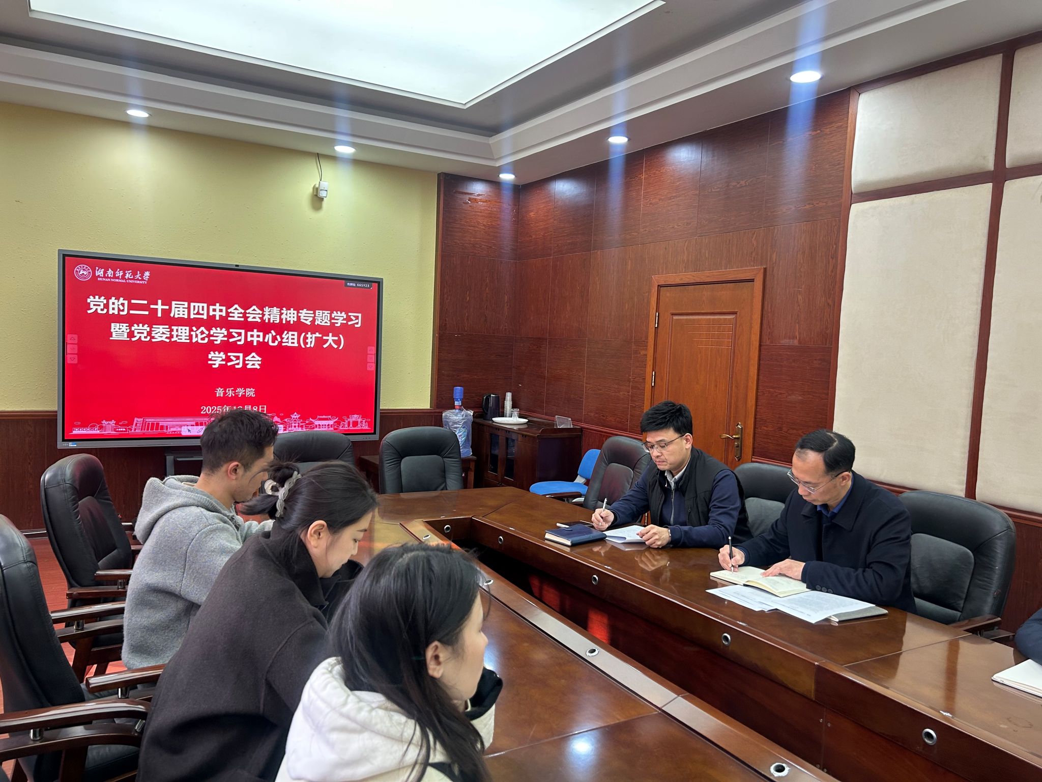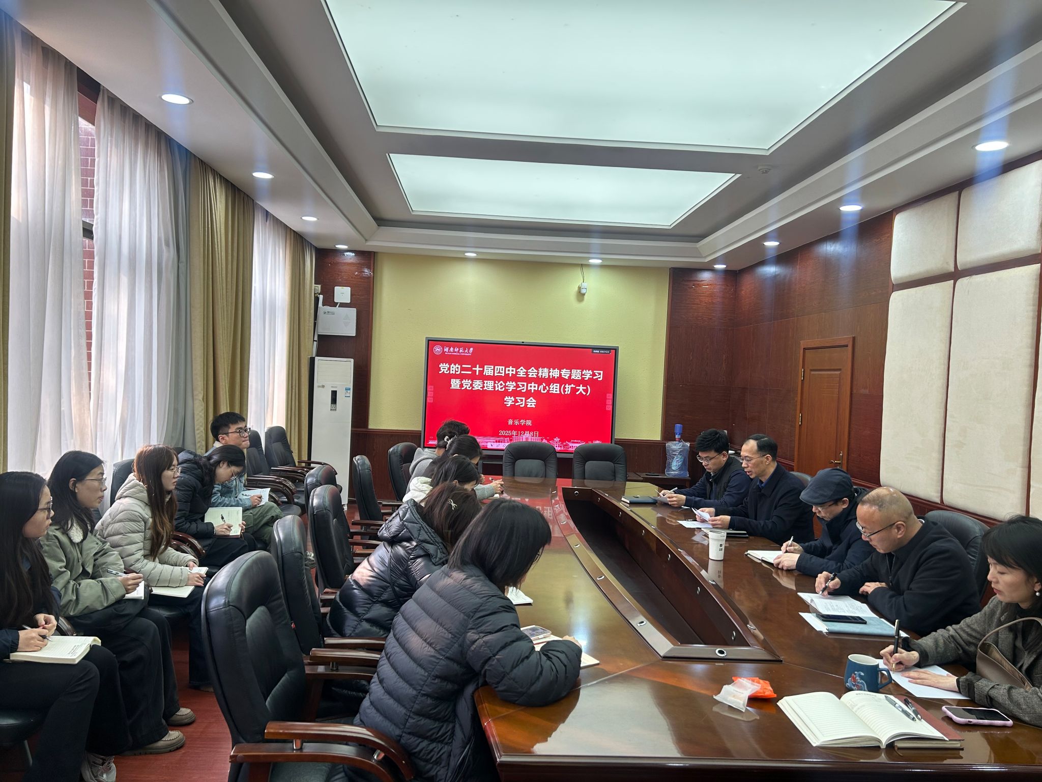 12月8日,学院党委举行党的二十届四中全会精神专题学习暨理论学习中心组(扩大)学习会议,学院党委委员、各支部书记参加学习。学院党委书记王铁钢主持会议。