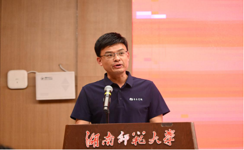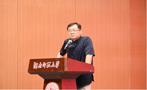 特邀教师代表,太阳网集团tcy8722“潇湘学者”讲座教授大兵发言,他围绕“如何成为一个真正的艺术家”展开讲述,认为成为一个真正的艺术家,首先要有天赋,其次要有“不如此,毋宁死”的决心,最后得有强大的自信心支撑自己,并希望新生们能够在大学生活中找到自己适合发展的道路,学业有成。