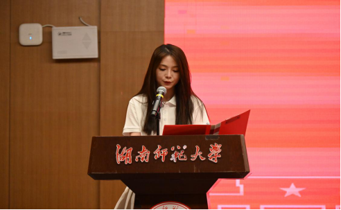 2024级艺硕研究生新生代表周婉婷发言。她先回顾了自己的艺术学习之路,并对自己未来的学习生活进行规划,鼓励同学们要积极面对挑战,能够珍惜学习的机会,共同进步。