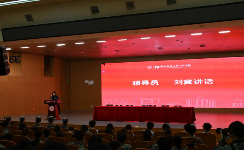 2024级辅导员刘冀发言,她提出军训是锻炼意志、增强体质的机会,是培养团队精神、增强集体荣誉感的途径,是提升自我管理能力和培养良好习惯的方式,是增强国防意识、培养爱国情怀的课堂,希望同学们能够迎接挑战,茁壮成长。