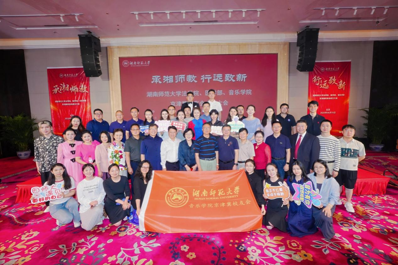 盛夏北京,湘情涌动。6月15日下午,我院与法学院、医学部京津冀校友会在北京联合举行成立大会。校党委委员、副校长刘怀德、原副校级督导、校关工委常务副主任徐书华、湖南师范大学京津冀校友会会长黄百炼、校友总会副秘书长余志华、校团委书记陈天嵩、基础教育发展中心副主任周熠、校友总会联络部主任袁鑫出席,院党委书记王铁钢、副院长贺南辉、钢琴系老师葛俭、声乐系老师钱树林及学工办老师文佳豪参加。