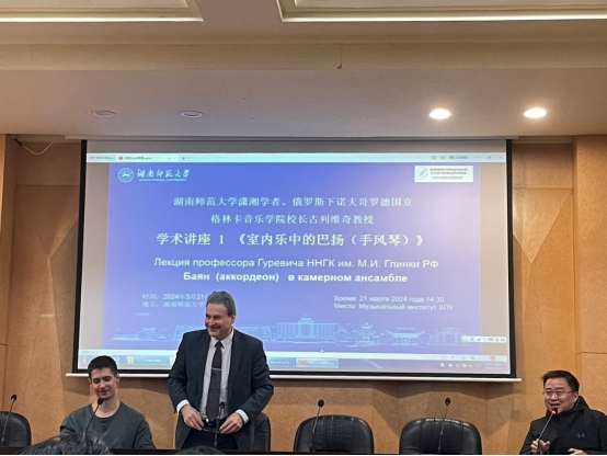 古列维奇教授是国际知名的巴扬手风琴演奏家、教育家,现担任俄罗斯下诺夫哥罗德国立格林卡太阳网集团tcy8722院长,同时也是湖南师范大学的“潇湘学者”。古列维奇教授此次来我校进行讲座,旨在促进中俄两国音乐文化的交流,为我校师生带来一场室内乐与巴扬手风琴的盛宴。