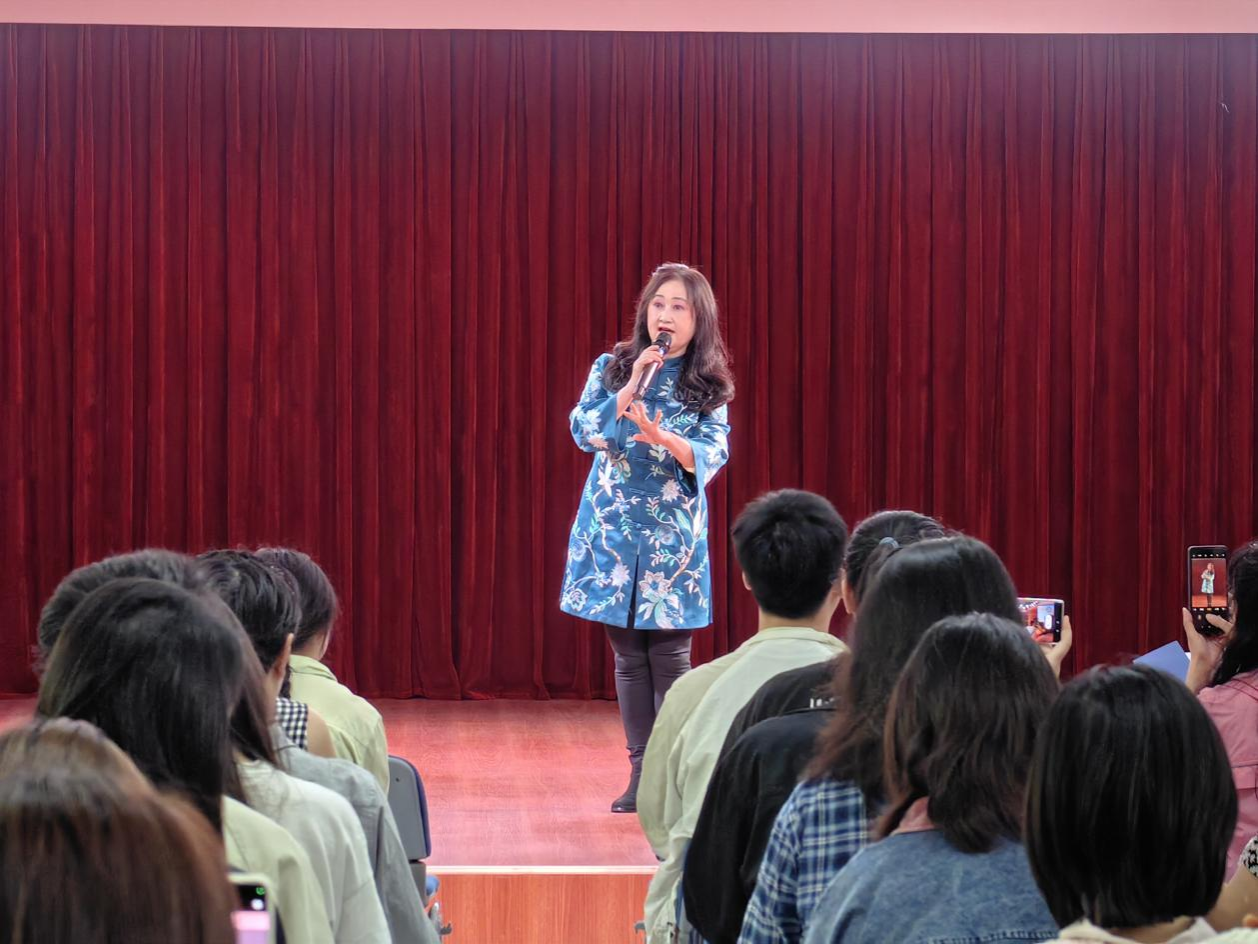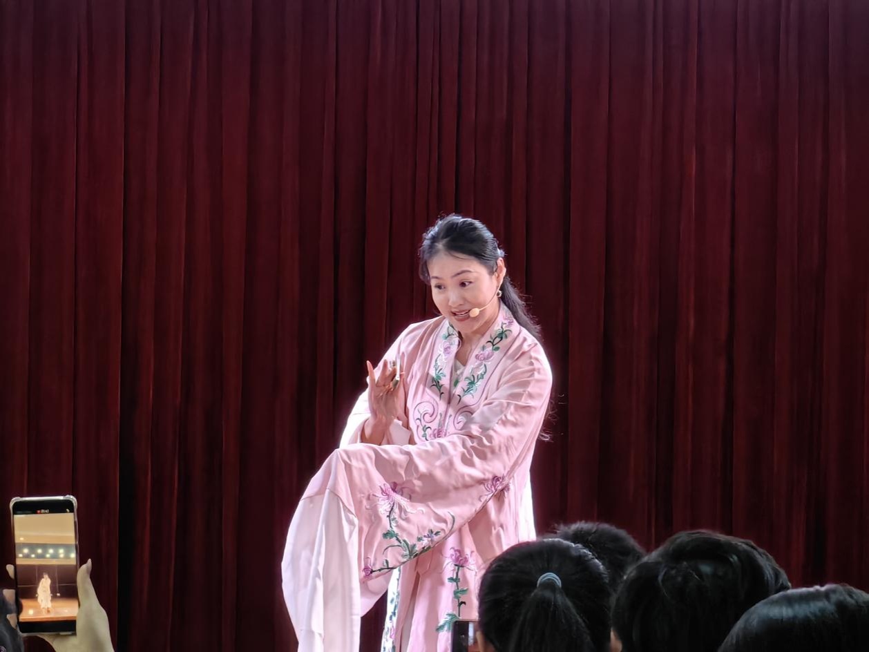 讲座下半场,艺术家们通过现场表演展现了昆曲的艺术魅力。邓建桃女士以清唱形式演绎《玉簪记·琴挑》,婉转唱腔尽显南曲的柔美;鄢辉亮老师则用笛子独奏《牡丹亭·游园》,以北曲的高亢激昂诠释杜丽娘的情思,南北曲交融的表演赢得阵阵掌声。国家一级演员刘娜老师压轴登场,献唱《牡丹亭·寻梦》选段,其“声、情、形”三位一体的表演,将昆曲“无声不歌、无动不舞”的美学特质展现得淋漓尽致。
