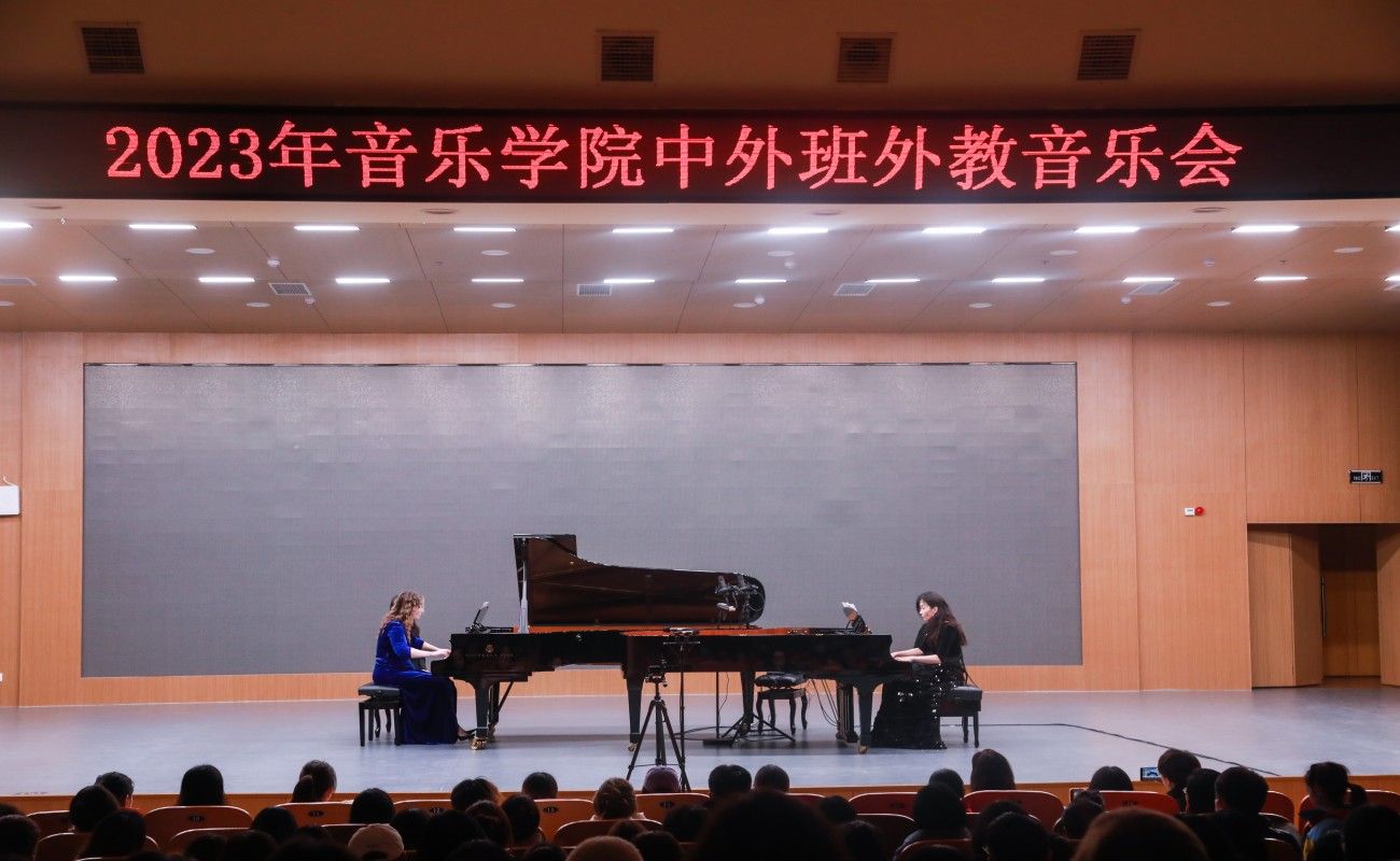 在音乐会上,由外籍教师塔季扬娜和玛利亚共同演绎的柴可夫斯基芭蕾舞剧《胡桃夹子组曲》作为开场,以一曲活泼可爱的“进行曲”拉开序幕,并以高贵庄严的“俄罗斯特列帕克舞曲”作为完美的结束。这两位钢琴家之间的默契协作与精彩对话,为观众呈现了一场引人入胜的戏剧性演出。除此之外,两位钢琴教师还为大家带来了多部拉赫玛尼诺夫的经典作品,展现出他们卓越的演奏技巧和深厚的音乐造诣。