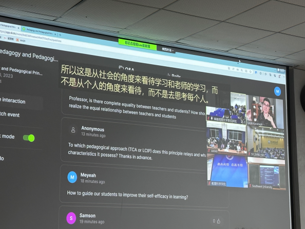 6月15日晚7:30在和乐楼202教室,宾夕法尼亚大学教育学院终身教授Sarah Kavanagh以“现代教育体系与政策背后的教学方法与教育学原理”为主题,向以2020级和2021级音乐学(师范)专业为主的同学和相关教师们召开国际前沿跨学科系列首场课程讲座。Sarah教授将与学习相关的理论、来自个人文化背景的但似乎从未被我们表述出来的隐性的见解进行剖析,并分享自身作为学习者的学习经验。在该讲座中,教授首先引导同学们发现自己关于学习的隐性理论,进一步引导大家理解学习是一个不断修正行为的过程、一个建构的过程、一个认知过程、一个文化过程,从而帮助学生改善个人学习理论并建立成熟的学习理论与模型,这些理论和模型亦会成为学习者今后学习、教育和科学技术研究的基础。讲座最后谈论有关学习动机和学习的社会、情感与道德维度的问题,对学生们进一步了解如何高效地学习十分有助。通过提问解答和经验分享,Sarah教授实时与同学们进行交流沟通,参与此次课程讲座的师生受益匪浅。
